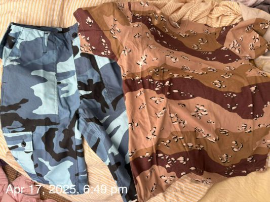 I was buying the shorts but my eye caught the t-shirt, which was described as "choc chip desert camo". Since there is a very real