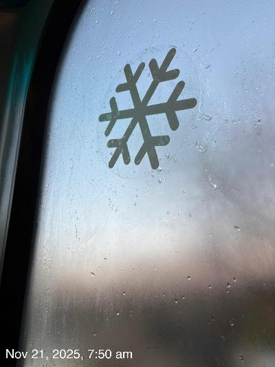 It was nice of the bus to cover up the actual snow outside with a picture of a snowflake.