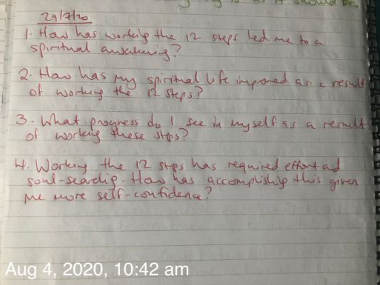 My work through the 12 steps continues - these are my latest set of questions to answer for step 12.