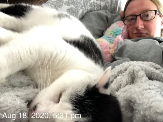 Another rainy, lazy, snuggly day with Sally. She insisted!