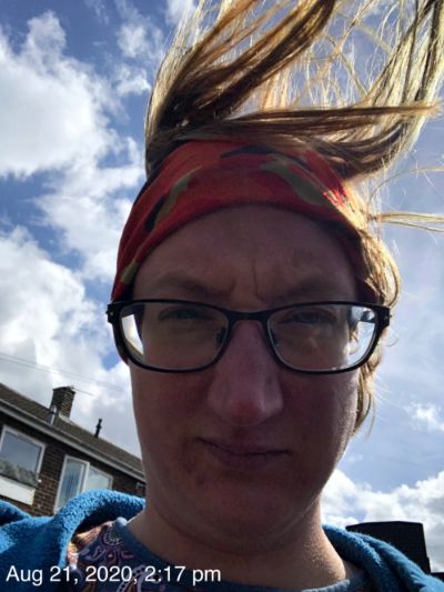 The wind was pretty mad today, so even with something over my head to tame part of it, I still developed an interesting look.