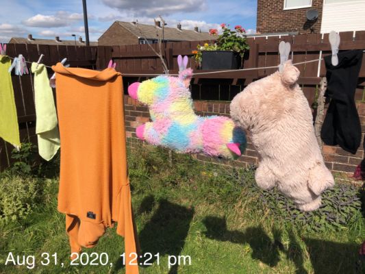After Gertrude's bath the other day, Fred and Muddy were also in need. They bravely survived the wash then dried out nicely on the line.