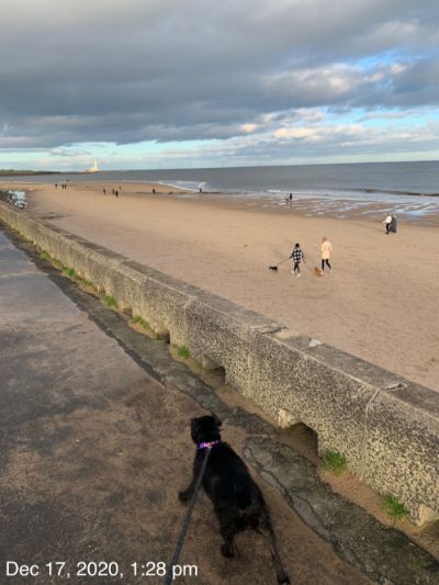 I borrowed Holly for a walk at Whitley Bay beach. She loves the sea and sand and I was sad not to let her off the lead but that would