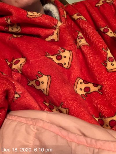 Sarah knows me well! She ordered me this pizza patterned blanket hoody which is super fluffy and warm.